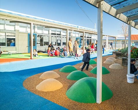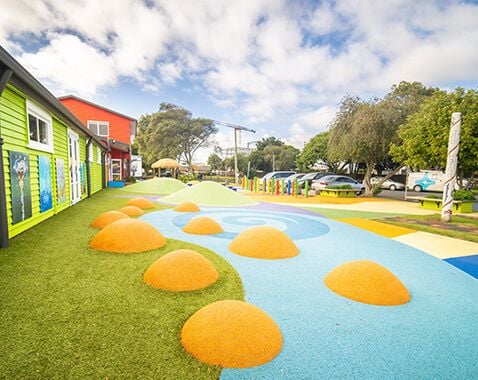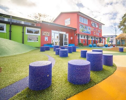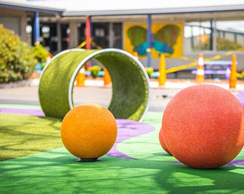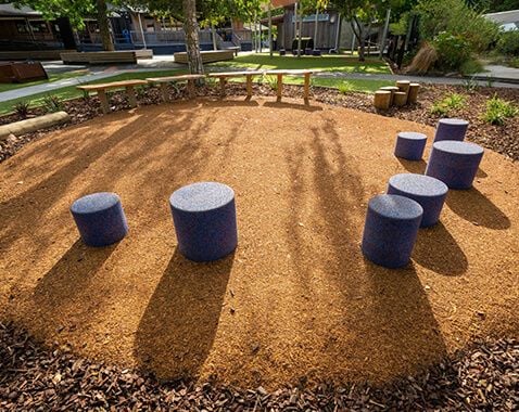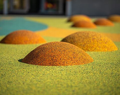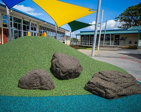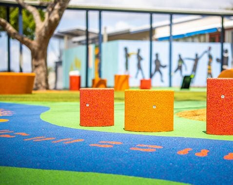 Surface Designs Playground Shapes by Creo are vibrant, durable, and engaging to transform ordinary playgrounds into imaginative play spaces. Made from high-quality, slip-resistant Rosehill TPV rubber soft fall, these playground shapes include but not limited to Steppers, Seats, boulders, balance balls, and custom animal shapes. They encourage physical activity, social interaction, and learning through play perfect for schools, parks, and recreational areas. With bold colours and long-lasting finishes, Surface Designs Playground Shapes bring fun, safety, and creativity to every outdoor surface.